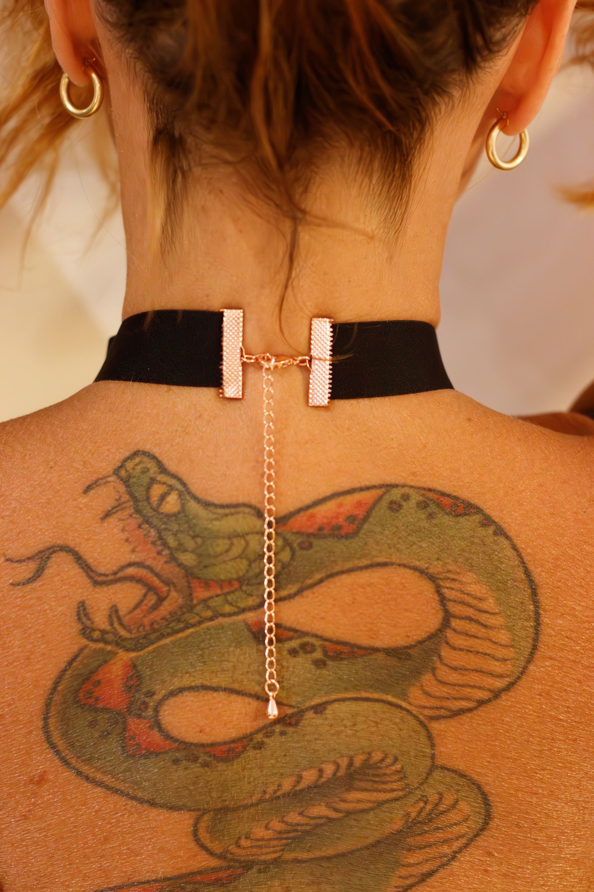 Accessoires : Bijou tour de cou chaine doré ; Masque rigide noir ; Masque rigide doré